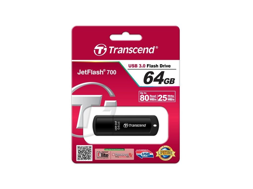 TRANSCEND Flash Disk 64GB JetFlash®700, USB 3.0 (R:80/W:25 MB/s) černá