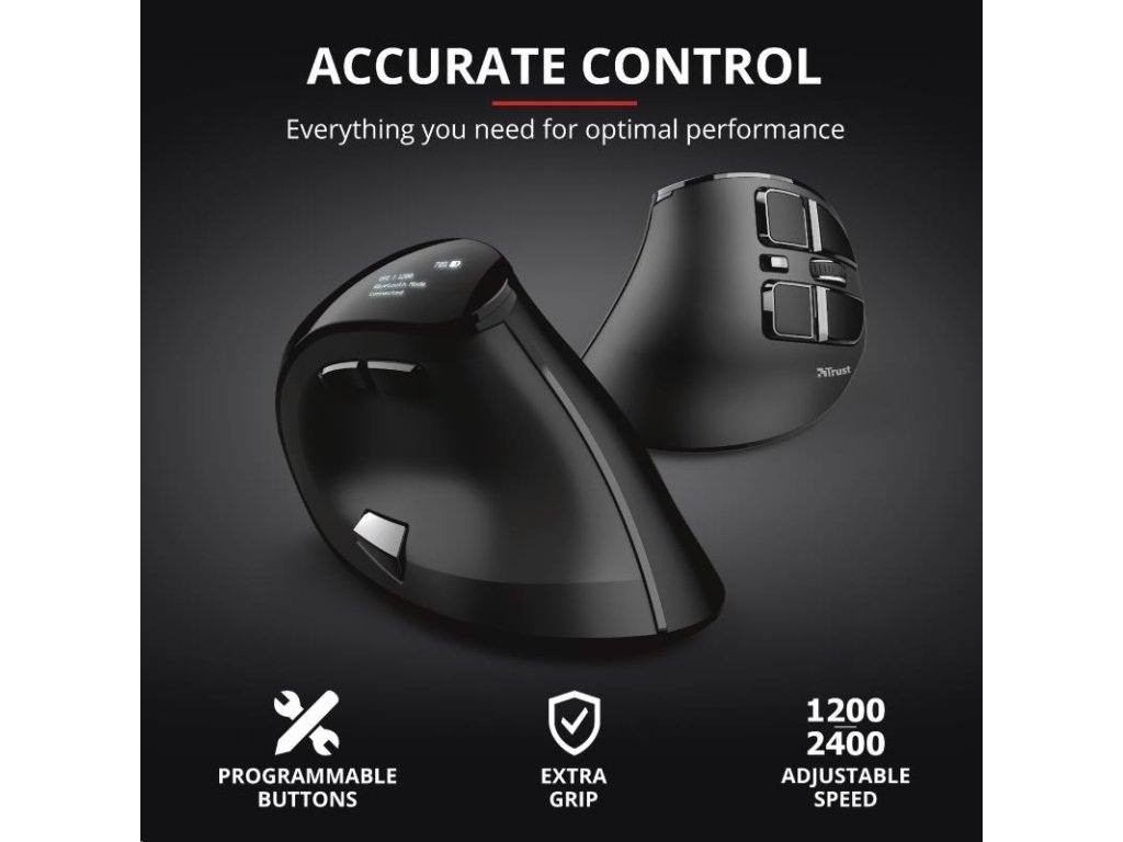 TRUST ergonomická Myš Voxx Rechargeable Ergonomic Wireless Mouse
