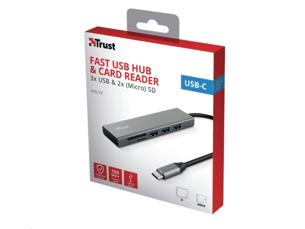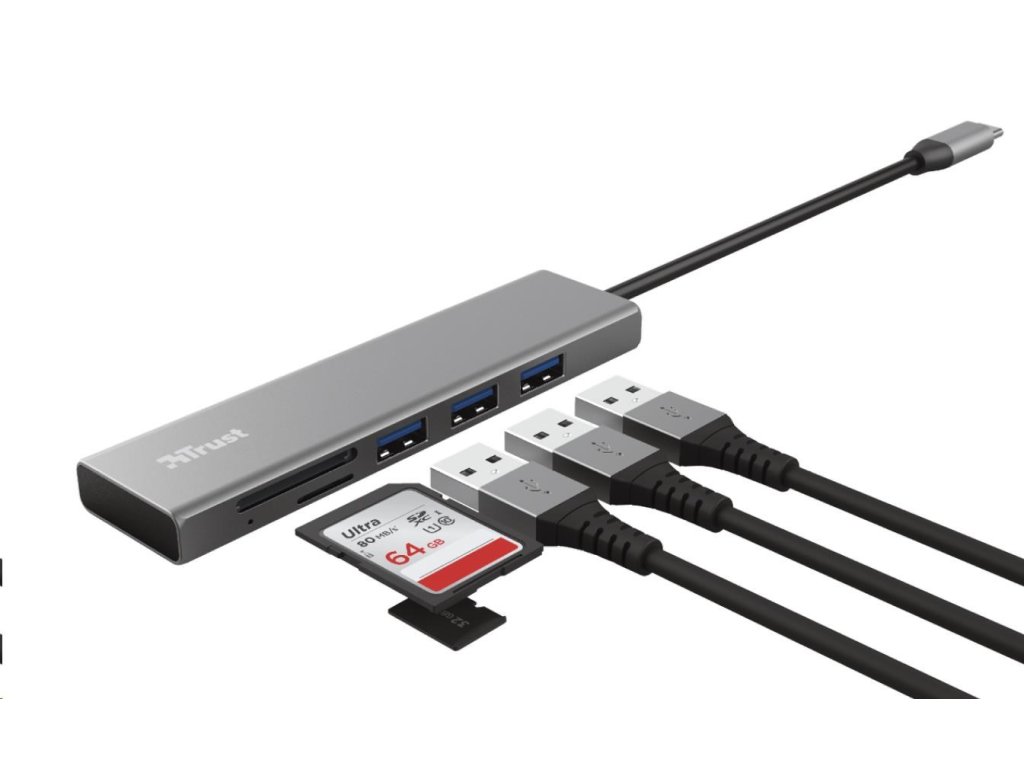 TRUST rozbočovač HALYX, Fast USB-C Hub & Card reader
