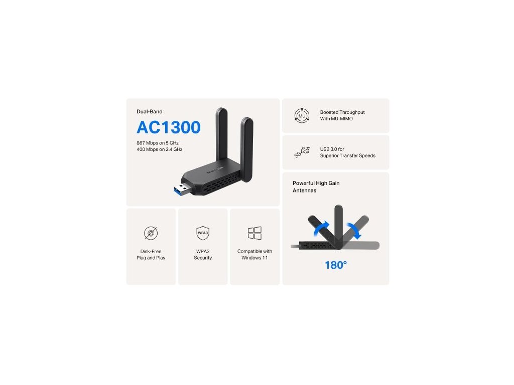USB klient TP-Link Mercusys MA32H Wireless USB adapter AC1300, 2,4/5 GHz