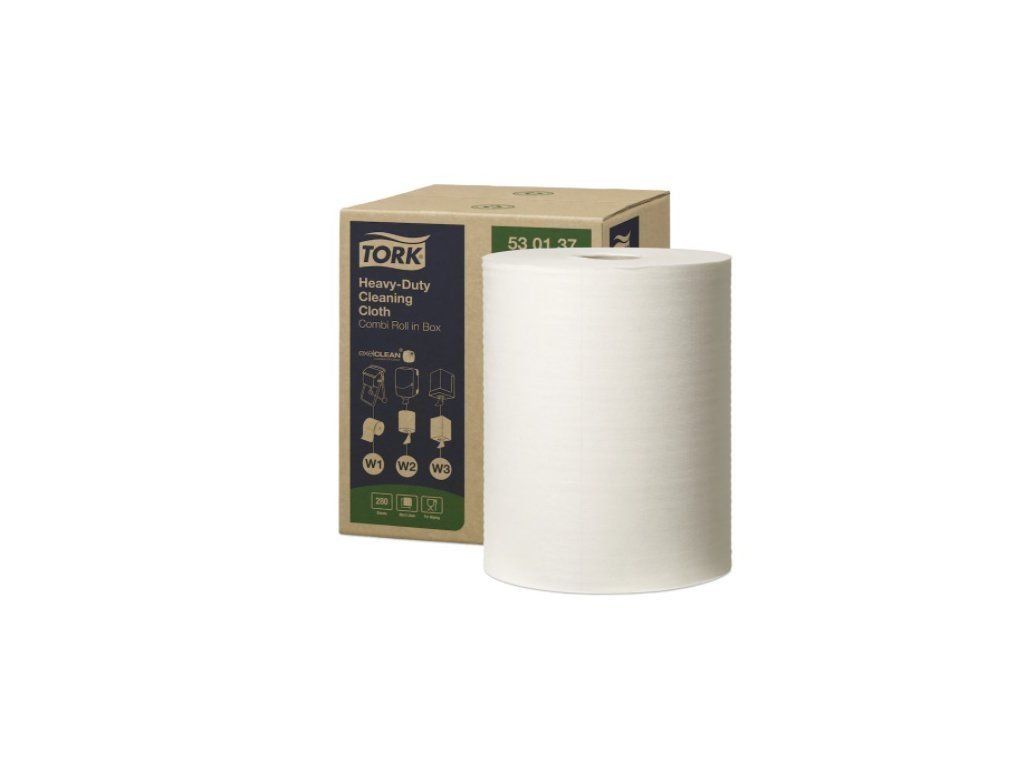 Utěrka Tork z netkané textílie Heavy-Duty W1, W2, W3 minirole bílá, 106,4m, 280 útržků
