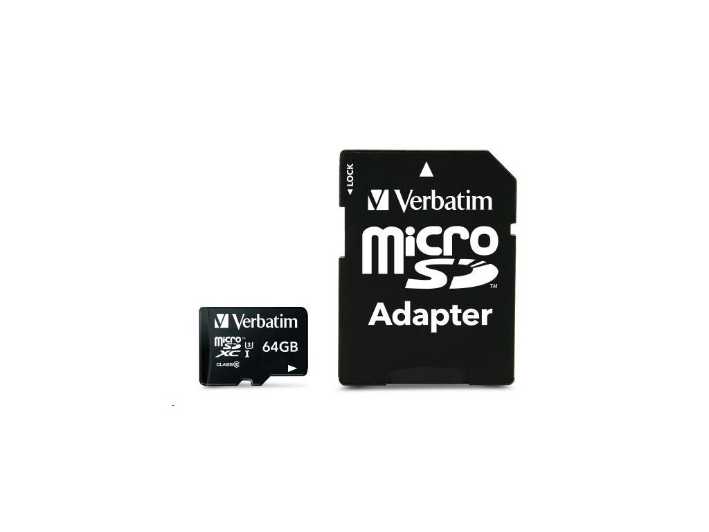 VERBATIM MicroSDXC karta 64GB Pro, U3 + adaptér