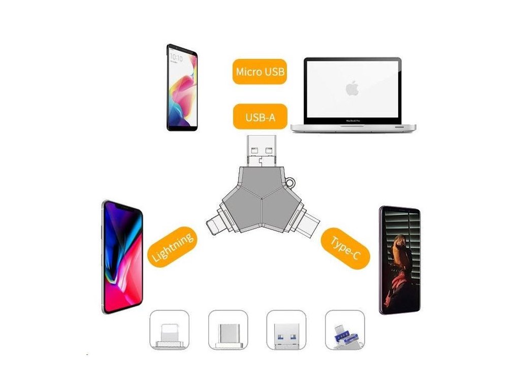 Viking USB Flash disk 3.0 4v1 s koncovkou Lightning/Micro USB/USB/USB-C, 128 GB, černá