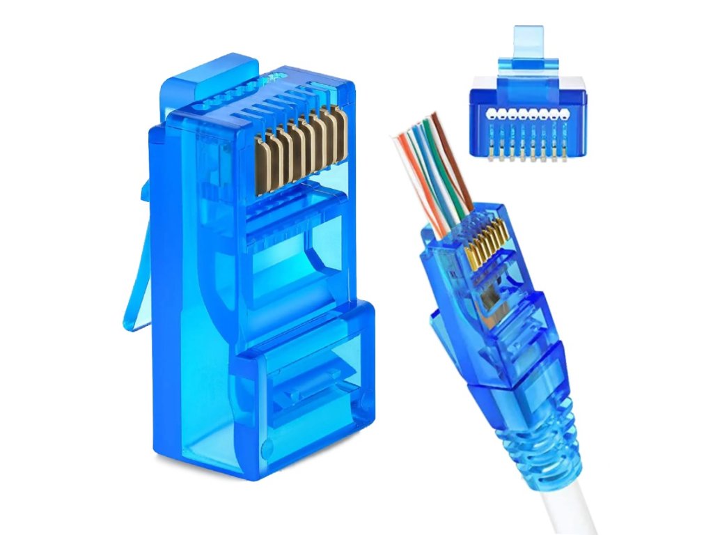 W-star Konektor UTP RJ45EZ Cat5e100ks pozlacený, modrá, pass through ethernet RJ45EZ5BS