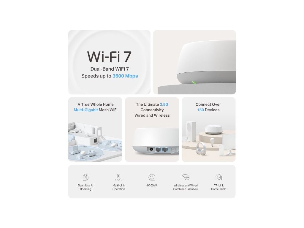 WiFi router TP-Link Deco BE25(2-pack) BE3600, WiFi 7, 2x 2.5GLAN, USB, 2,4/5/6GHz