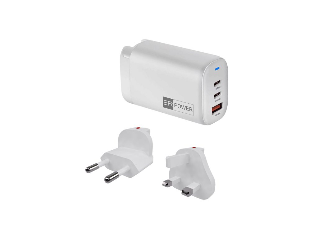 ER POWER 65W GaN síťový adaptér 2xUSB-C PD/USB-A bílý