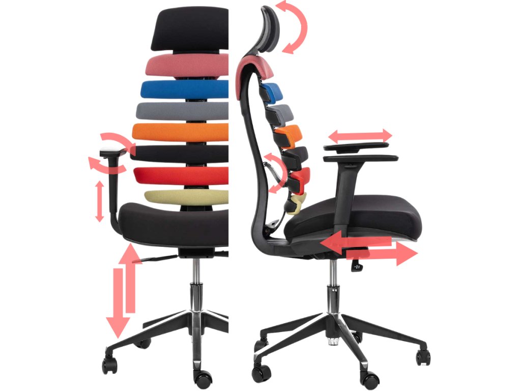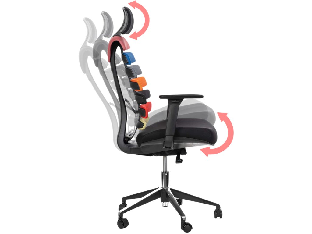 Ergonomická kancelářská židle FISH BONES s opěrkou hlavy, barevná