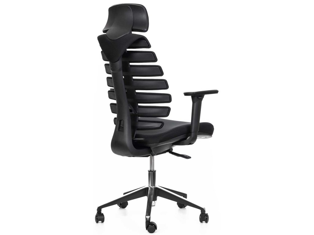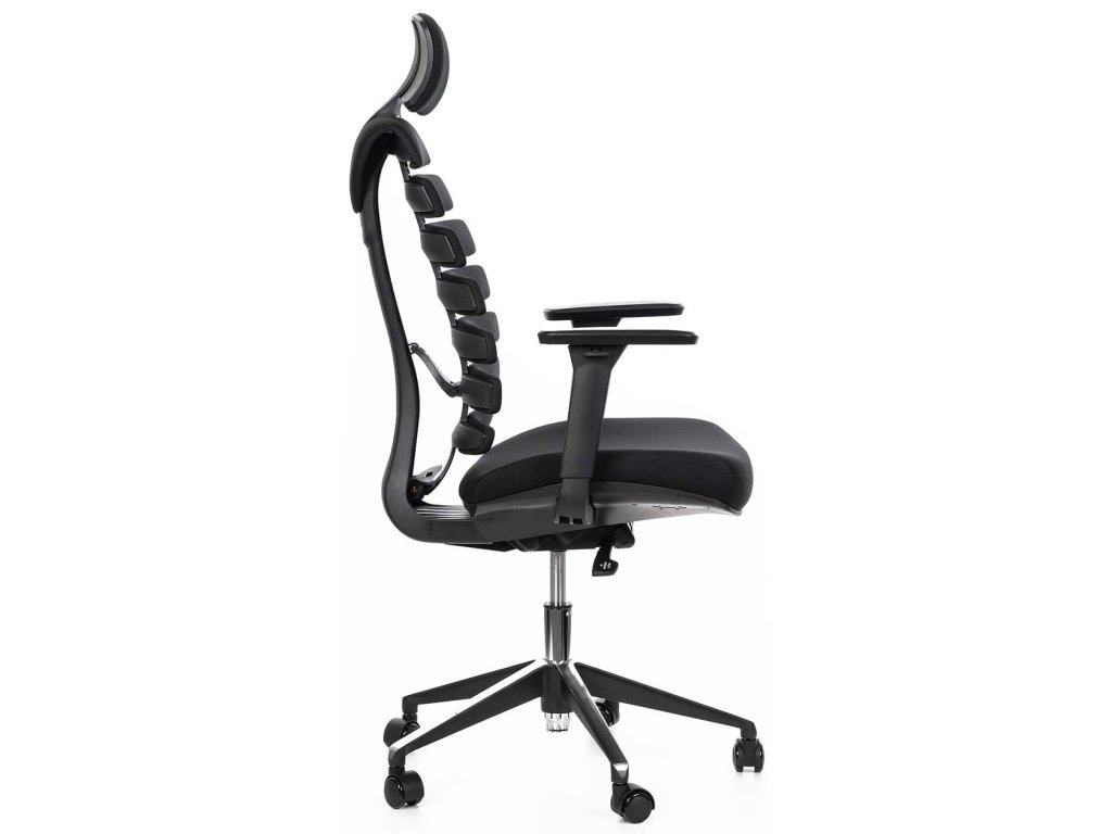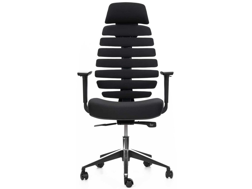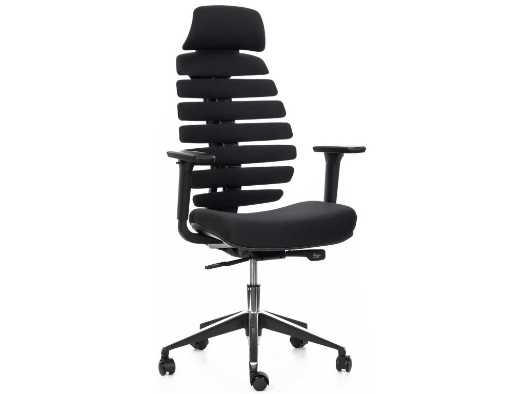 Ergonomická kancelářská židle FISH BONES s opěrkou hlavy, černý plast, černá 26-60, 3D područky, sezení 8 hodin denně