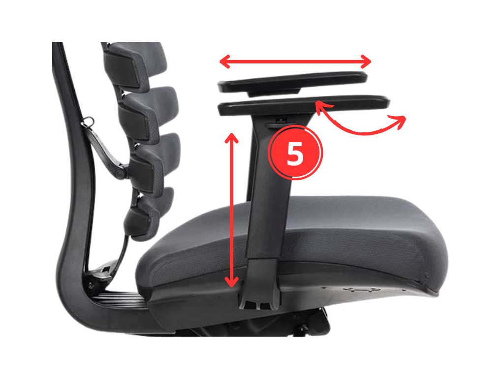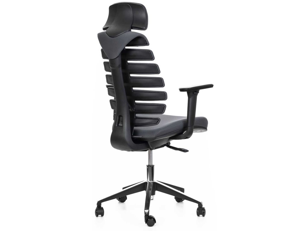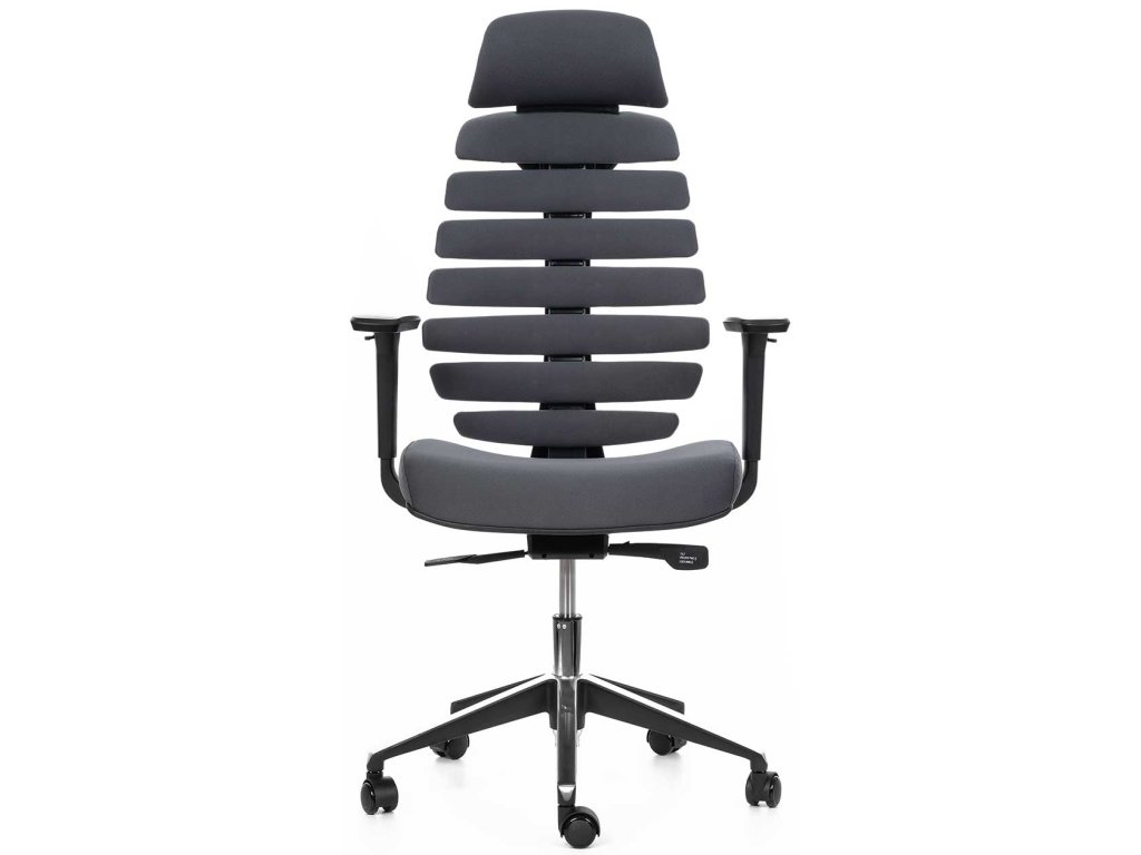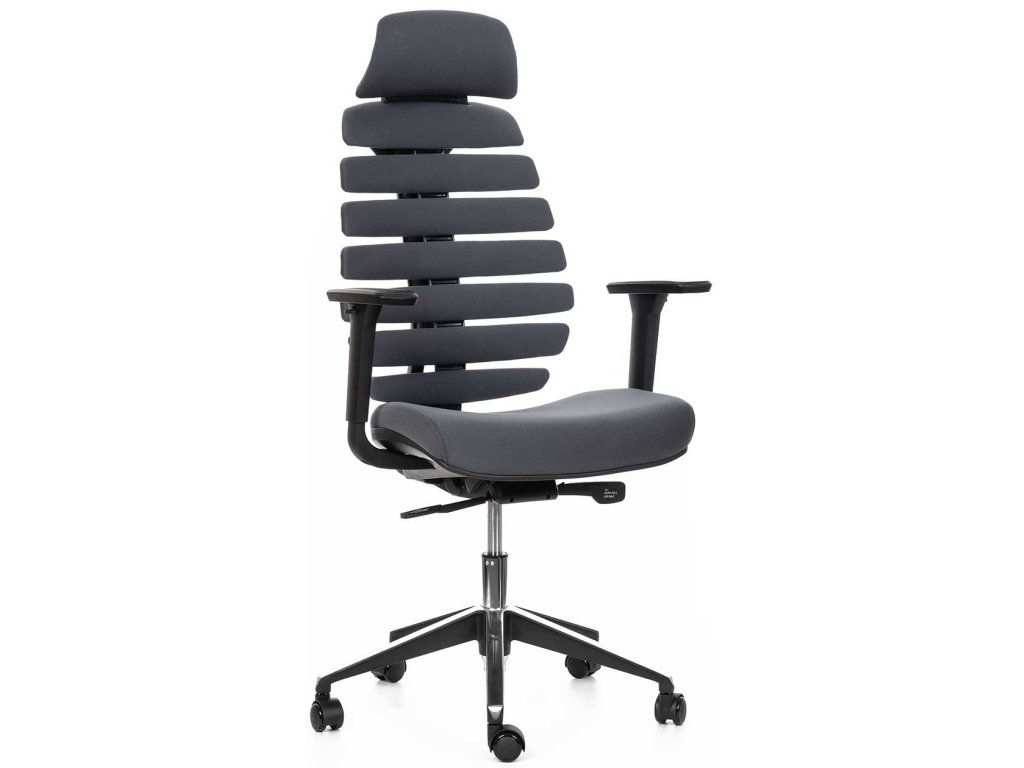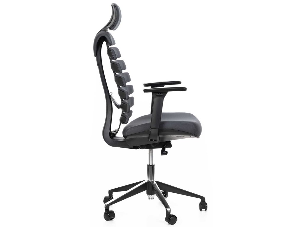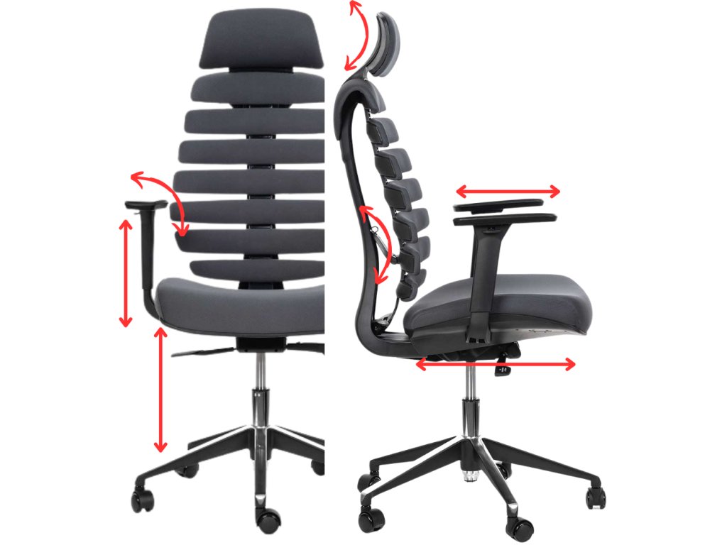 Ergonomická kancelářská židle FISH BONES s opěrkou hlavy, černý plast, tmavě šedá, sezení 8 hodin denně