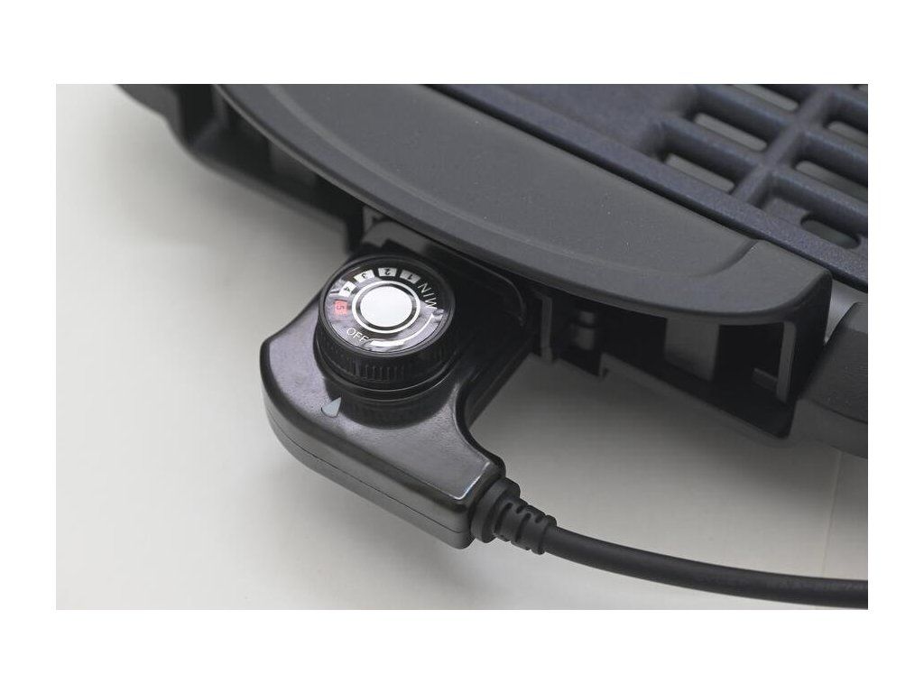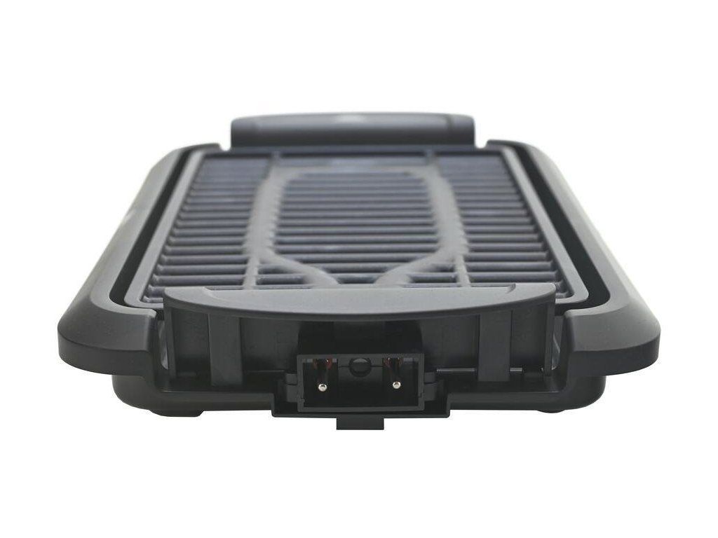 Gril je vybavený dvěma snadno vyměnitelnými grilovacími pláty – jedním s klasickým roštem pro maso a druhým s hladkou teppanyaki plochou pro všestranné grilování. Grilovací desky mají nepřilnavý povrch a jsou z hliníku pro rovnoměrné rozložení tepla. Integrovaný termostat umožňuje plynulé nastavení teploty podle potřeby. Nádoba na zachytávání tuku ve spodní části přispívá k čistému provozu a menší kouřivosti, pokud použijete trochu vody.