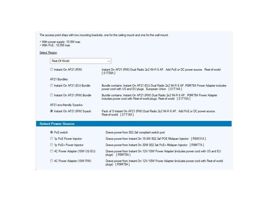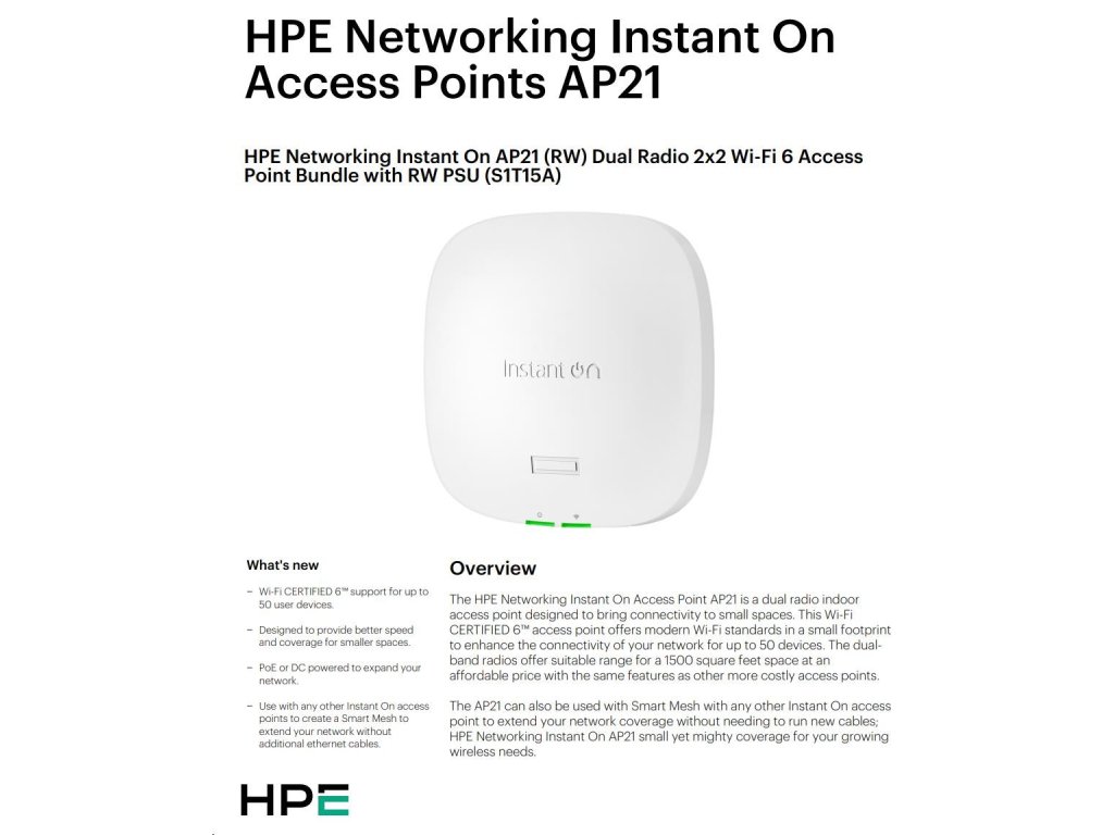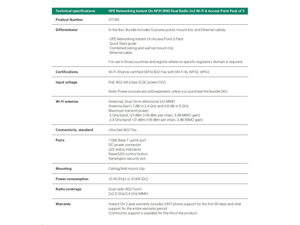 HPE Networking Instant On AP21 (RW) Dual Radio 2x2 Wi-Fi 6 Access Point 5 Pack (+ 5 Mount Brackets)Kód produktu: ED1881109