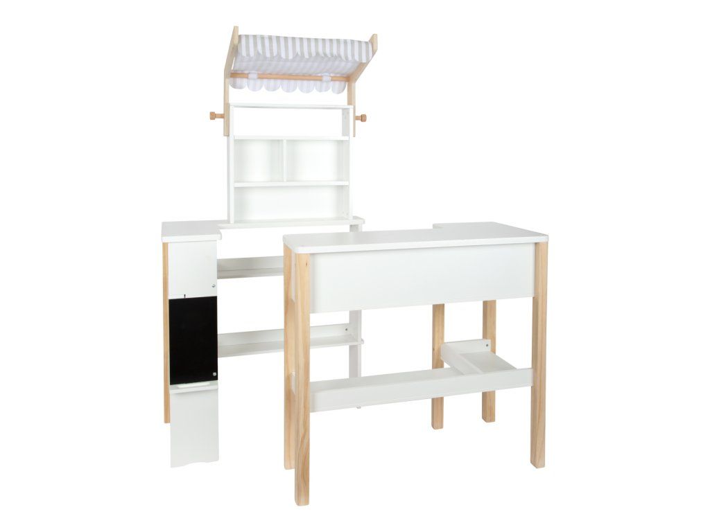 V dřevěném prodejním stánku Small Foot Fresh si od vašeho dítěte koupíte pečivo, zákusky, maso a jiné potraviny nebo třeba květiny. Záleží na dětské představivosti a hračkách, které vlastní. Stánek v krásném bílém provedení skvěle zapadne do každého dětského pokoje. Látková markýza hračku zdobí a zároveň je odnímatelná.