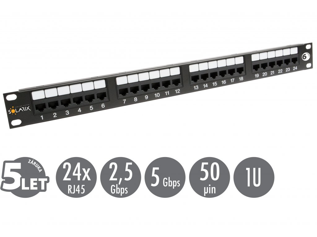 19'' patch panel Solarix 24 x RJ45 CAT6 UTP 350 MHz černý 1U SX24-6-UTP-BK