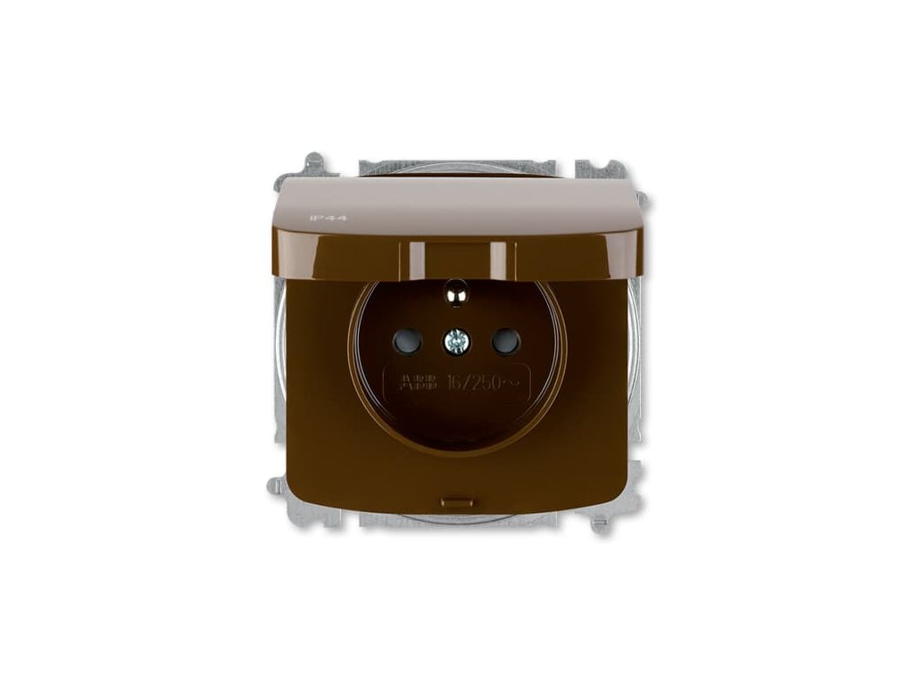 ABB TANGO Zásuvka 5519A-A02997 H jednonásobná s clonkami, s víčkem, IP44, bezšroubové svorky, hnědá