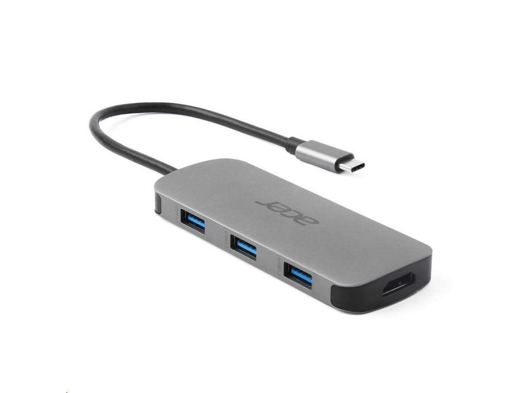 ACER Dokovací stanice 7in1 Type-C dongle, 1x HDMI, 3x USB-A 3.2 Gen1, 1x SD 3.0, 1x microSD, 1x USB-C, silver