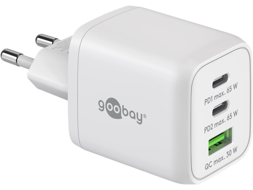 Adaptér 230V na 2x USB-C a 1x USB-A PD (Quick charge) 65W, bílý