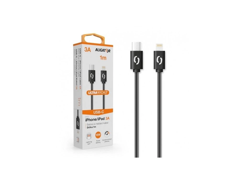 ALI DK 3A, USB-C/lightning,černý DATKP33