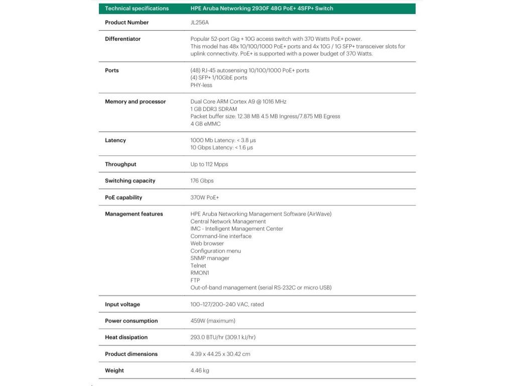 Aruba 2930F 48G PoE+ 4SFP+ Swch RENEW JL256A