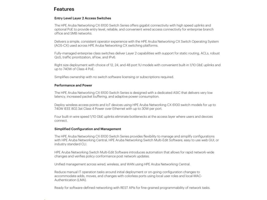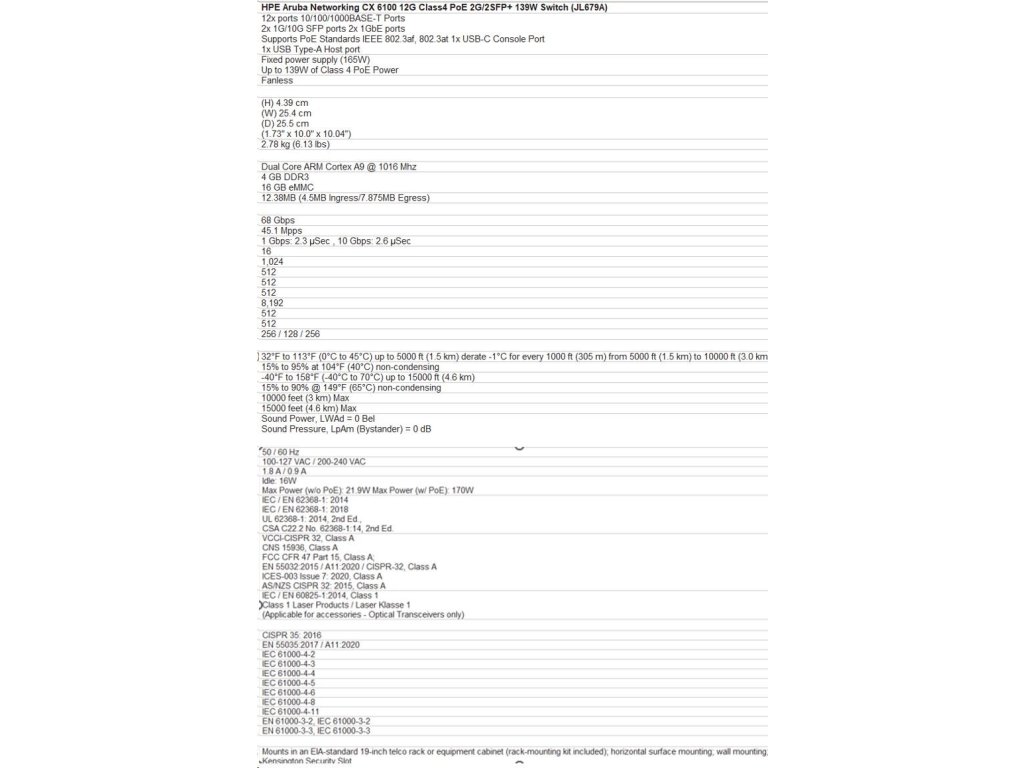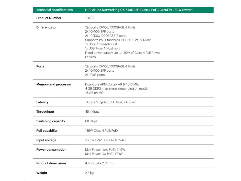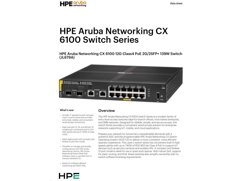 Aruba 6100 12G Class4 PoE 2G/2SFP+ 139W Switch JL679A RENEW