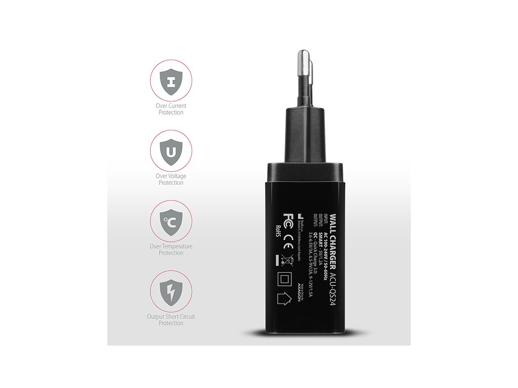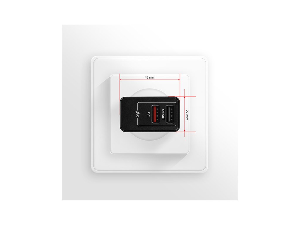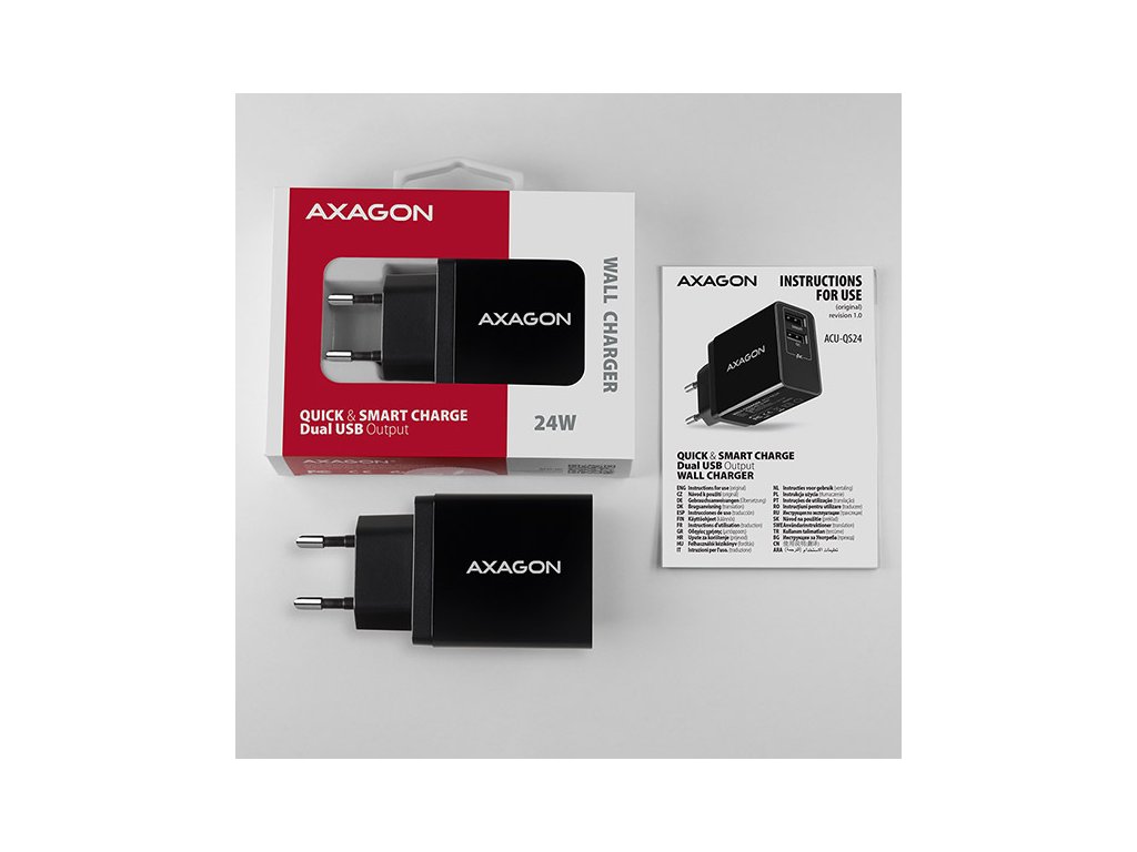AXAGON ACU-QS24, QC & SMART nabíječka do sítě 24W, 2x USB-A port, QC3.0/AFC/FCP + 5V/1.2A