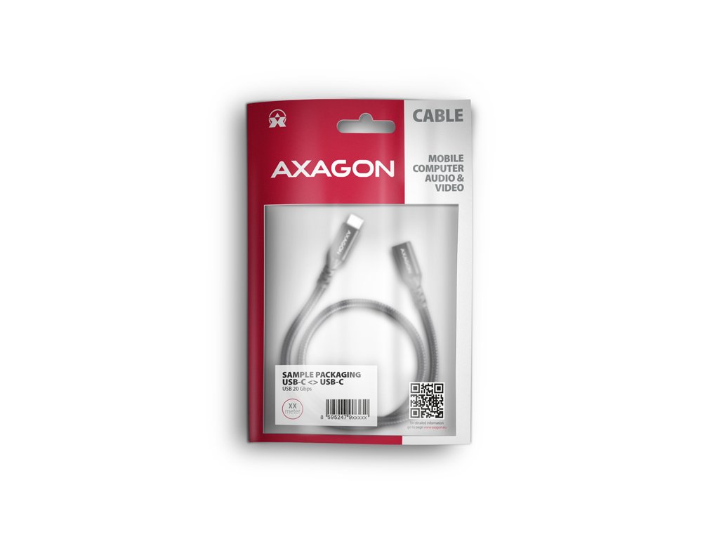 AXAGON BUCM32-CF05AB prodlužovací kabel USB-C (M) <-> USB-C (F), 0.5m, USB 20Gbps, PD 240W 5A, 8K HD, ALU, oplet, černý