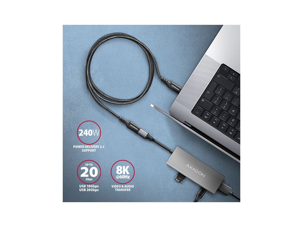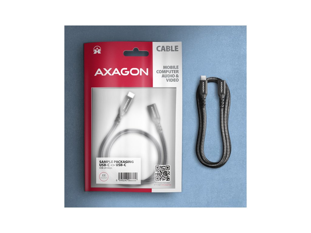 AXAGON BUCM32-CF15AB prodlužovací kabel USB-C (M) <-> USB-C (F), 1.5m, USB 20Gbps, PD 240W 5A, 8K HD, ALU, oplet, černý
