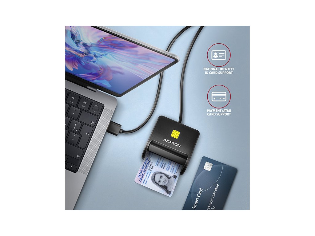 AXAGON CRE-SMPC, USB-C PocketReader čtečka kontaktních karet Smart card (eObčanka, eID klient)