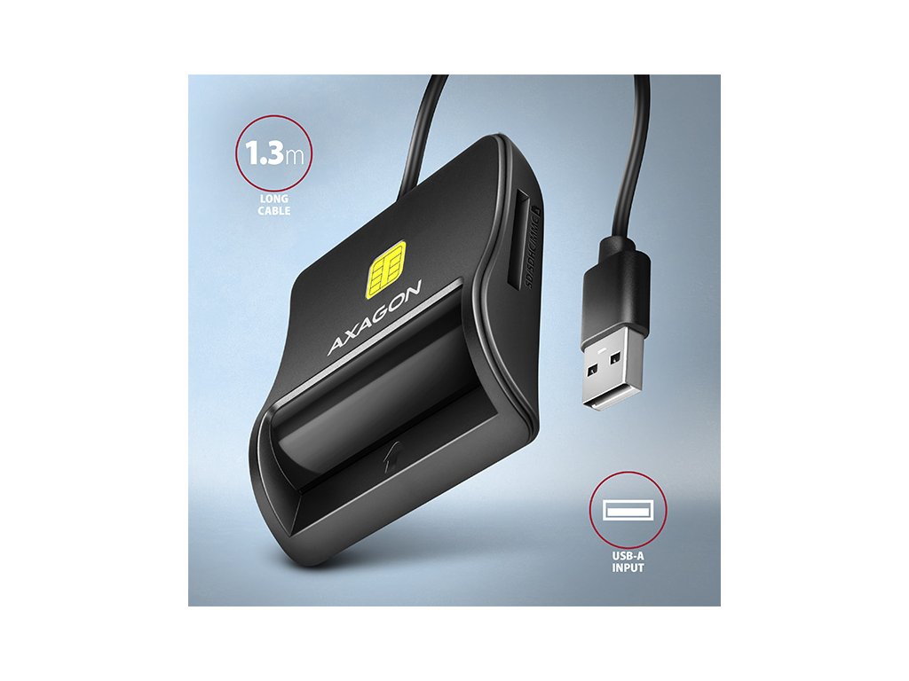 AXAGON CRE-SM3T, USB-A FlatReader čtečka kontaktních karet Smart card (eObčanka), kabel 1.3m