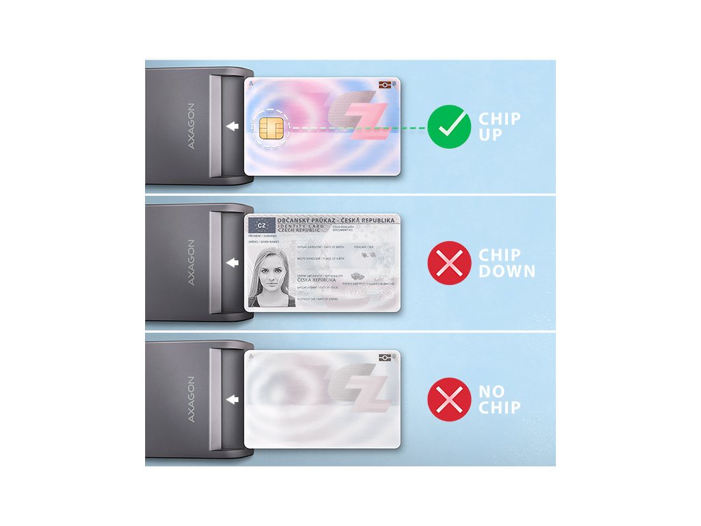 AXAGON CRE-SM3TC, USB-C FlatReader čtečka kontaktních karet Smart card (eObčanka), kabel 1.2m