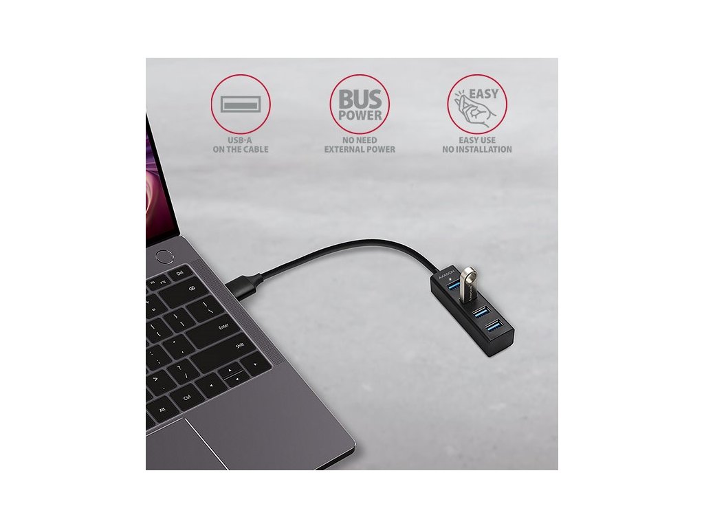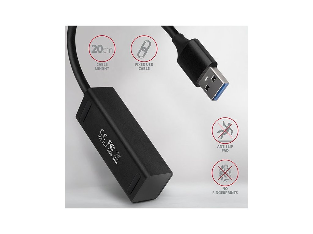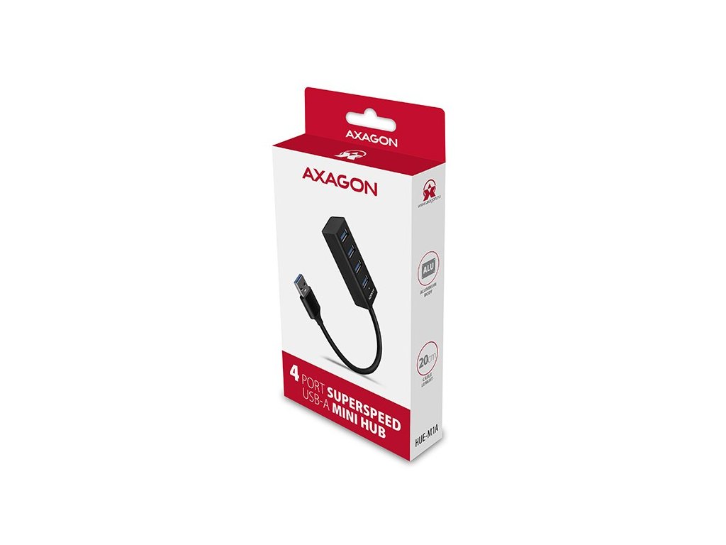AXAGON HUE-M1A, 4x USB 3.2 Gen 1 MINI hub, kovový, kabel USB-A 20cm