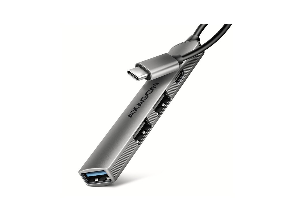 AXAGON HUE-STC, 4x USB ALU STRIP hub, 1x USB-A 5Gbps, 2x USB-A & 1x USB-C 480Mbps, kabel USB-C 12cm