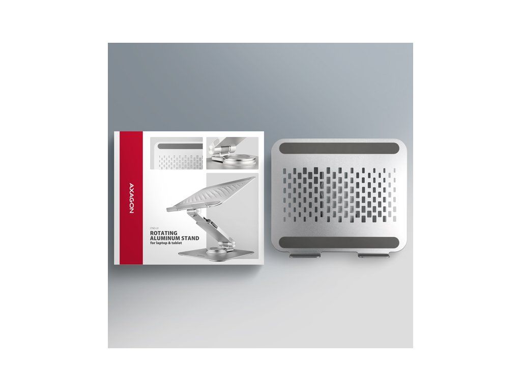 AXAGON STND-LR hliníkový stojan na notebook 10''-17.3'' nastavitelná výška a úhel, otočný, šedý