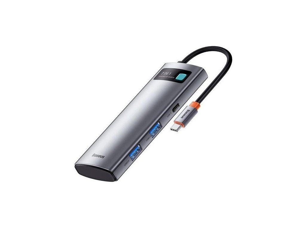 Baseus dokovací stanice 7v1 USB-C (USB-C PD 100W, USB-C, 2x USB 3.0, HDMI, SD/TF port) šedá