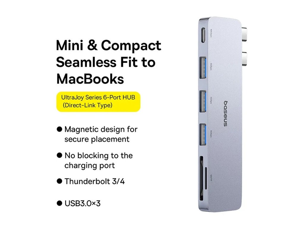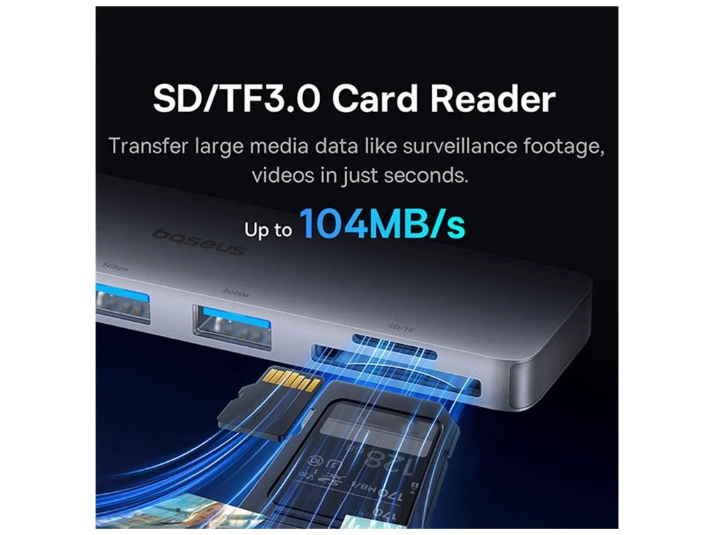 Baseus Dokovací stanice Ultra Joy 6v1 (USB-C PD, 3xUSB 3.0, SD/TF) šedá