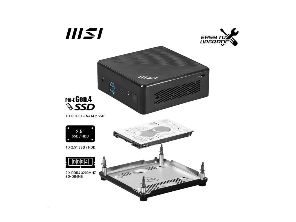 BAZAR - MSI PC Cubi Cubi 5 12M-001BEU, i7-1255U, N/A, N/A SSD, No OS, Black - Poškozený obal (Komplet)
