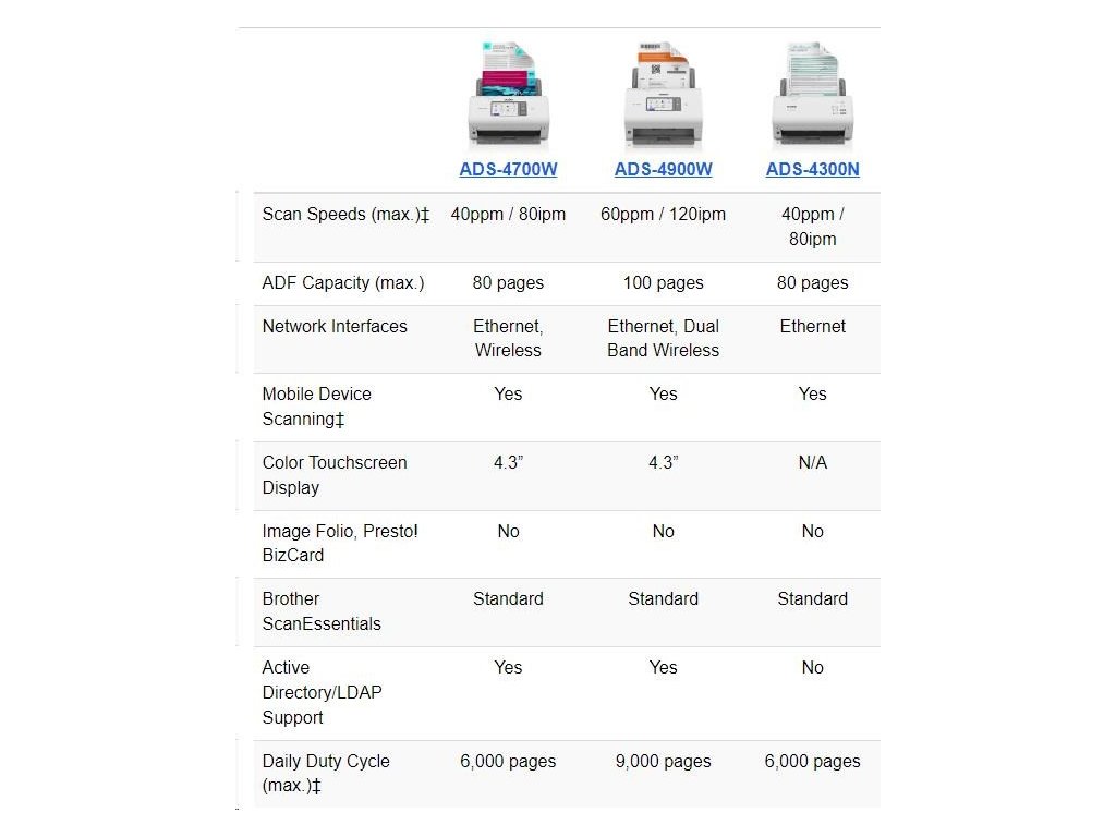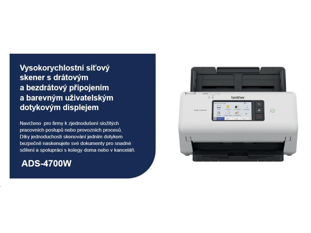 BROTHER skener ADS-4700W DUALSKEN A4 40pppm/80dual 600x600 60ADF USB LAN WIFI - display 10.5cm
