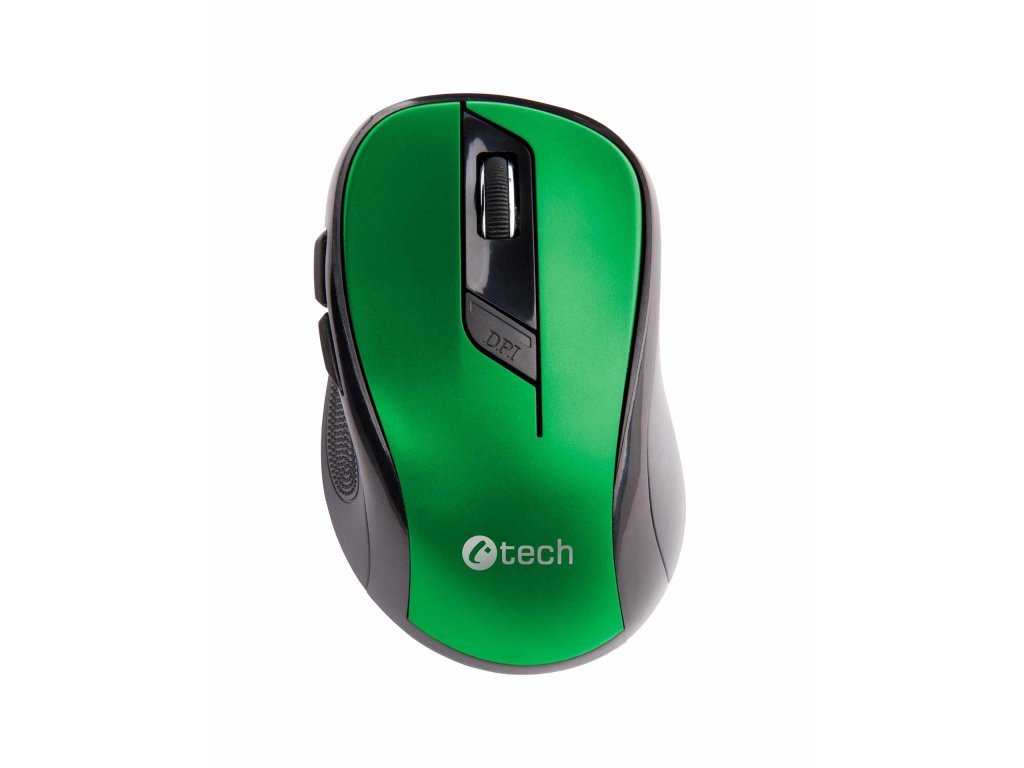 C-TECH myš WLM-02, černo-zelená, bezdrátová, 1600DPI, 6 tlačítek, USB nano receiver