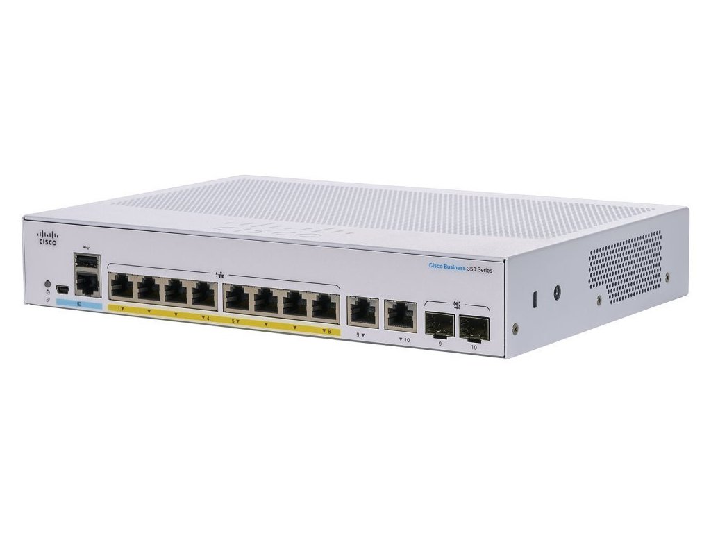 Cisco CBS350-8FP-2G-EU (8xGbE,2xGbE/SFP combo,8xPoE+,120W,fanless) - REFRESH