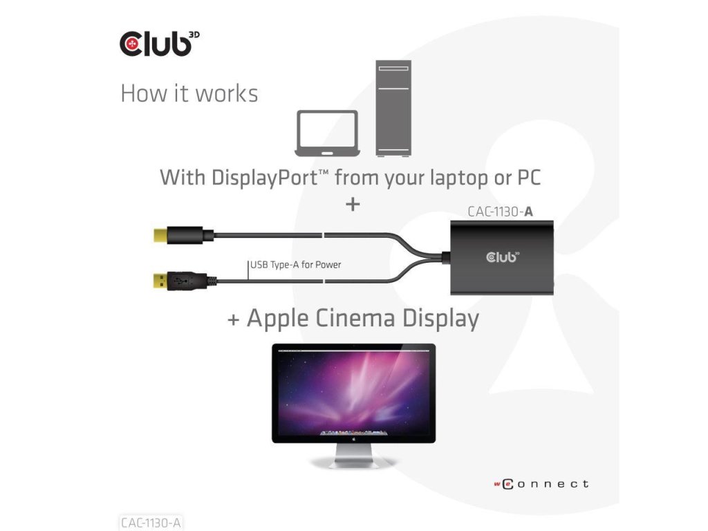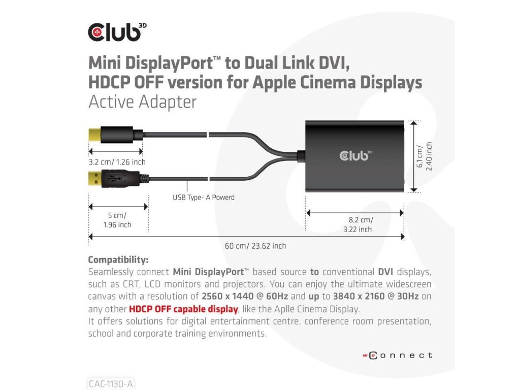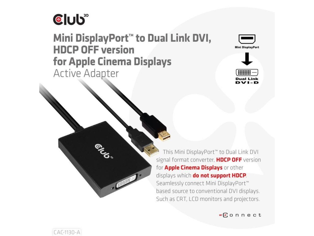 Club3D adaptér Mini DP na Dual Link DVI, HDCP OFF version for Apple Cinema Displays Active Adapter