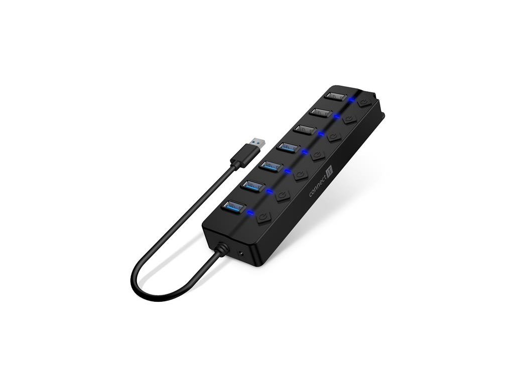 CONNECT IT Mighty Switch 2 USB-A hub, (4xUSB-A 3.0, 3xUSB-A 2.0), externí, ČERNÝ