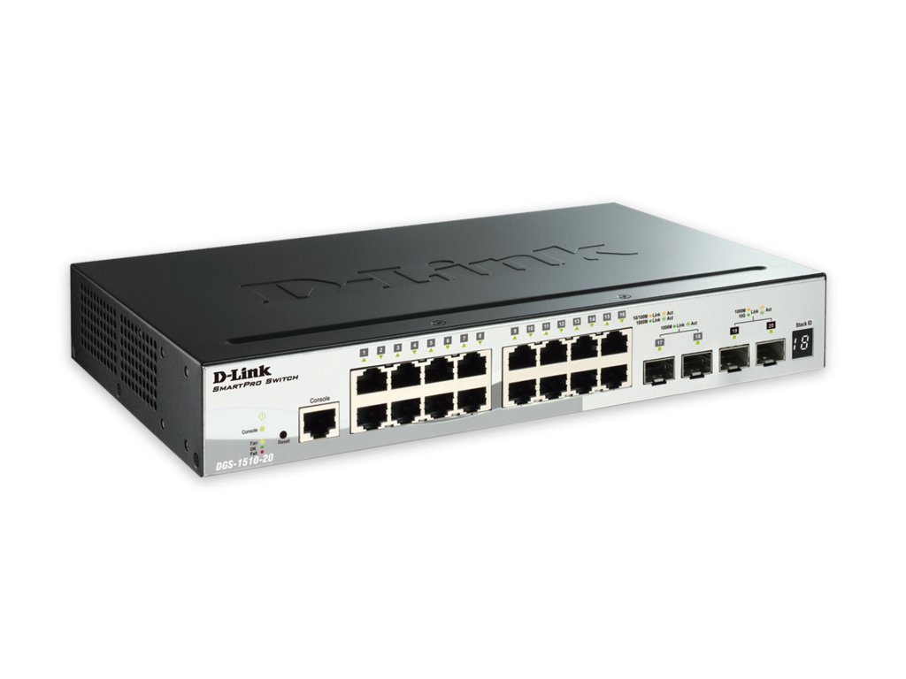D-Link DGS-1510-20, 20-Port Gigabit Stackable SmartPro Switch, 2x SFP, 2x 10G SFP+