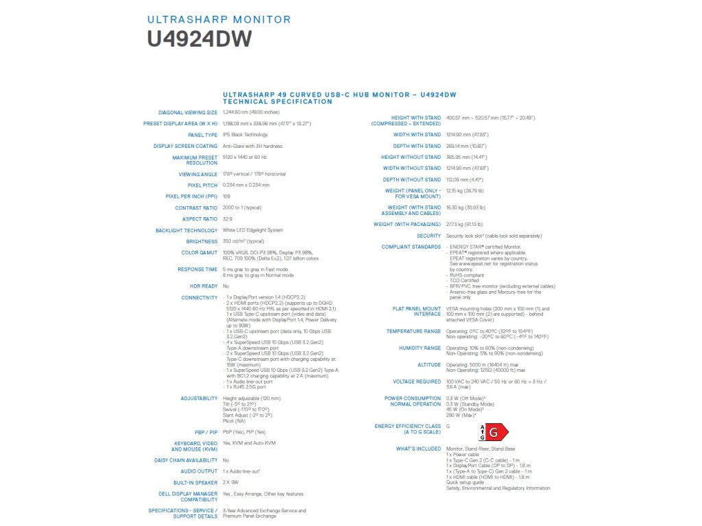 Dell UltraSharp/U4924DW/49''/IPS/5120x1440/60Hz/5ms/Black/3R