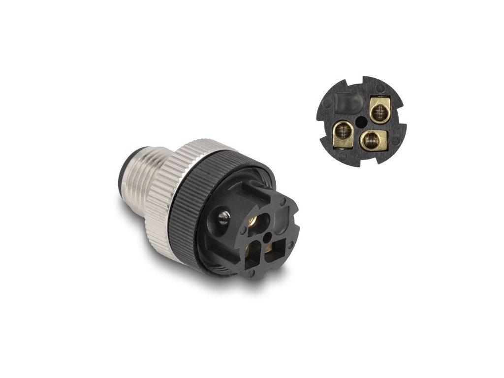 Delock A-kódovaný 3 pinový zástrčkový konektor M12 pro šroubové připojení montáž