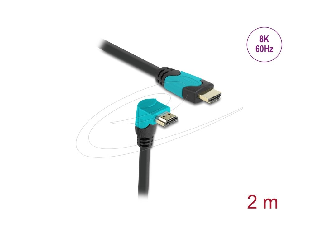 Delock High Speed HDMI kabel samec přímý na samec 90° pravoúhlý dolů 48 Gbps 8K 60 Hz 2 m