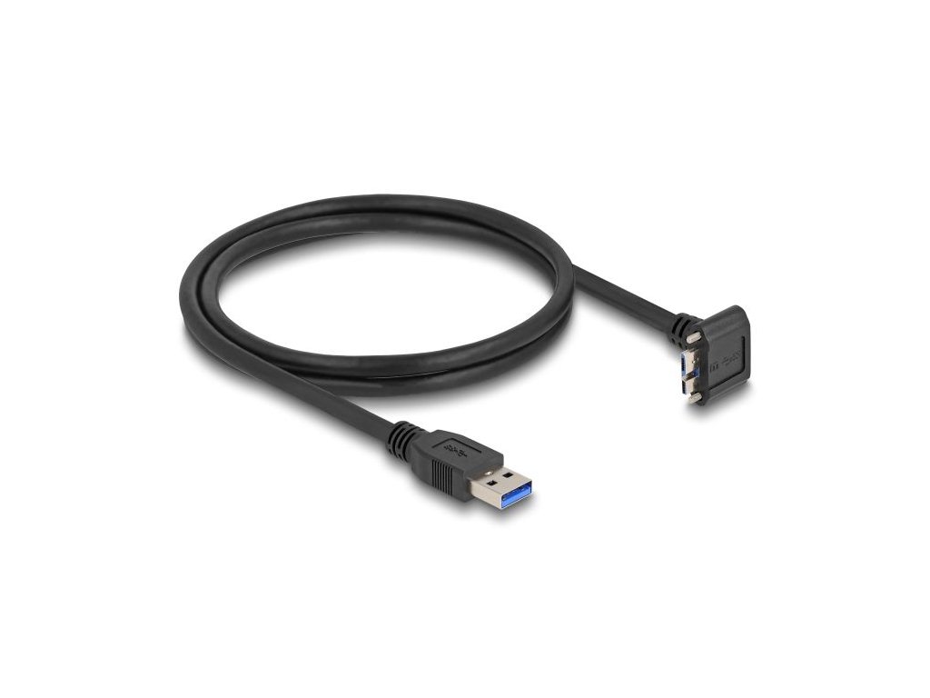 Delock Kabel s rozhraním USB 5 Gbps, se zástrčkou USB Typ-A, přímá, na zástrčku USB Micro-B, se šrouby, pravoúhlá nahoru