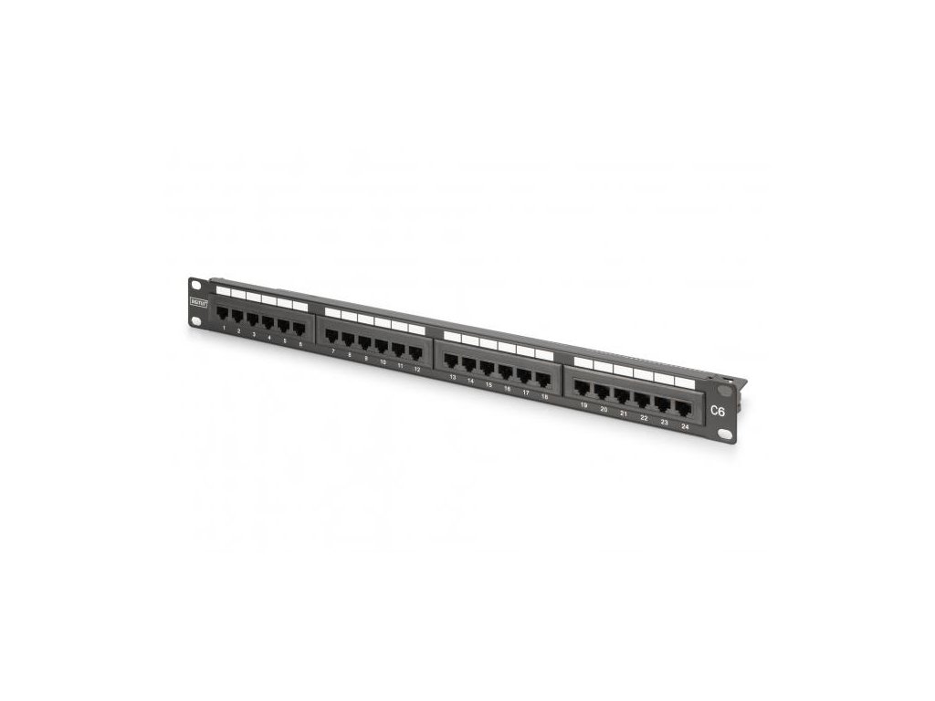 DIGITUS CAT 6, Class E Patch panel, nestíněný 24portový RJ45, 8P8C, LSA, 1U, rackový mount