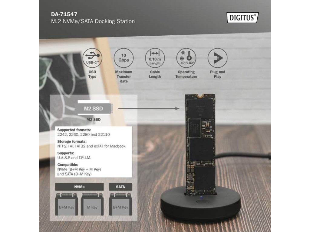 DIGITUS DA-71547 Dokovací stanice M.2 NVMe/SATA/USB-C