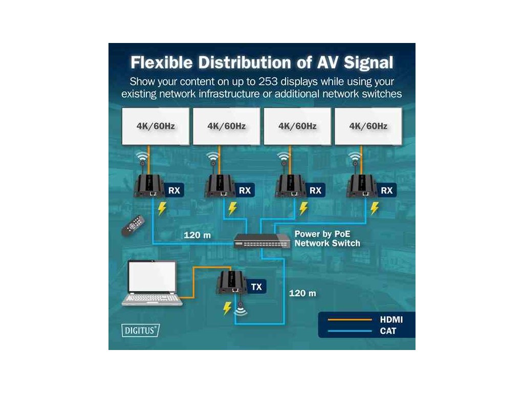 DIGITUS HDMI IP PoE Extender Set, 4K/60Hz