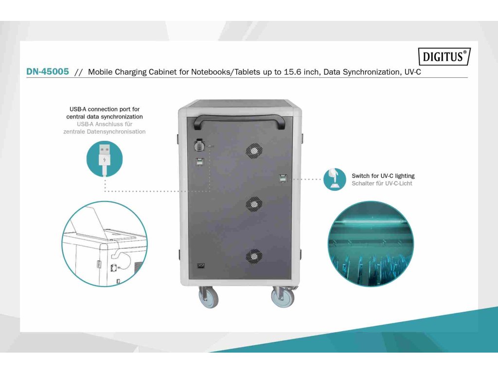 DIGITUS Mobilní nabíjecí skříňka pro notebooky/tablety do 15,6", synchronizace dat, UV-C Osvětlení-Sterilizace