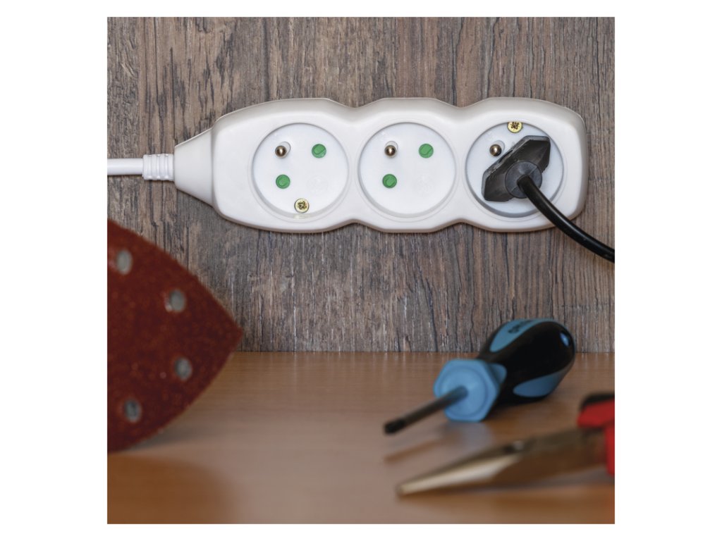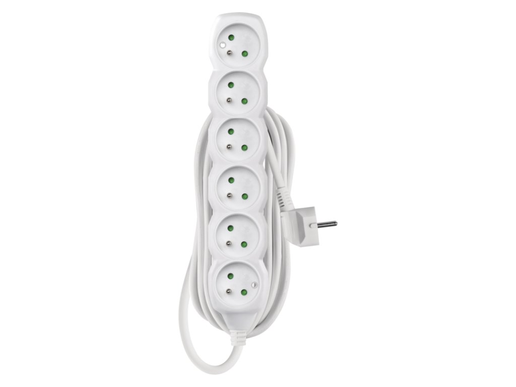 Prodlužovací kabel 10m s uzemněním, 5 zásuvek - bílý, 3*1,5 mm2, 3680 W